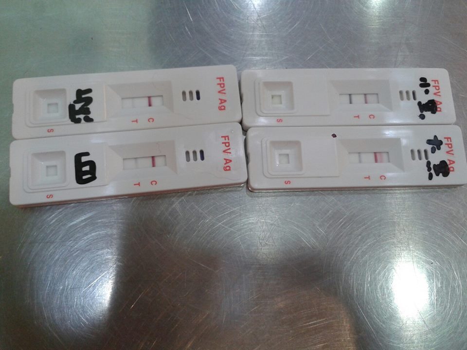 就在第二天因想起今年似乎各地特別流行貓瘟...所以交代醫生做貓瘟檢驗....就這樣.....通通陽性反應(差異在於:強陽性與弱陽性)