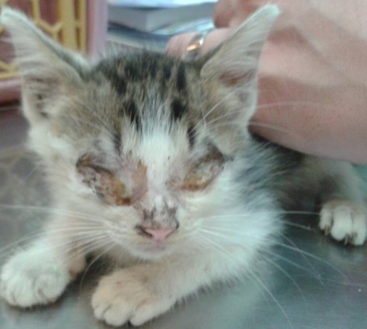 整個眼睛都感染滿厲害,已經睜不開了,看到這幕感到心疼