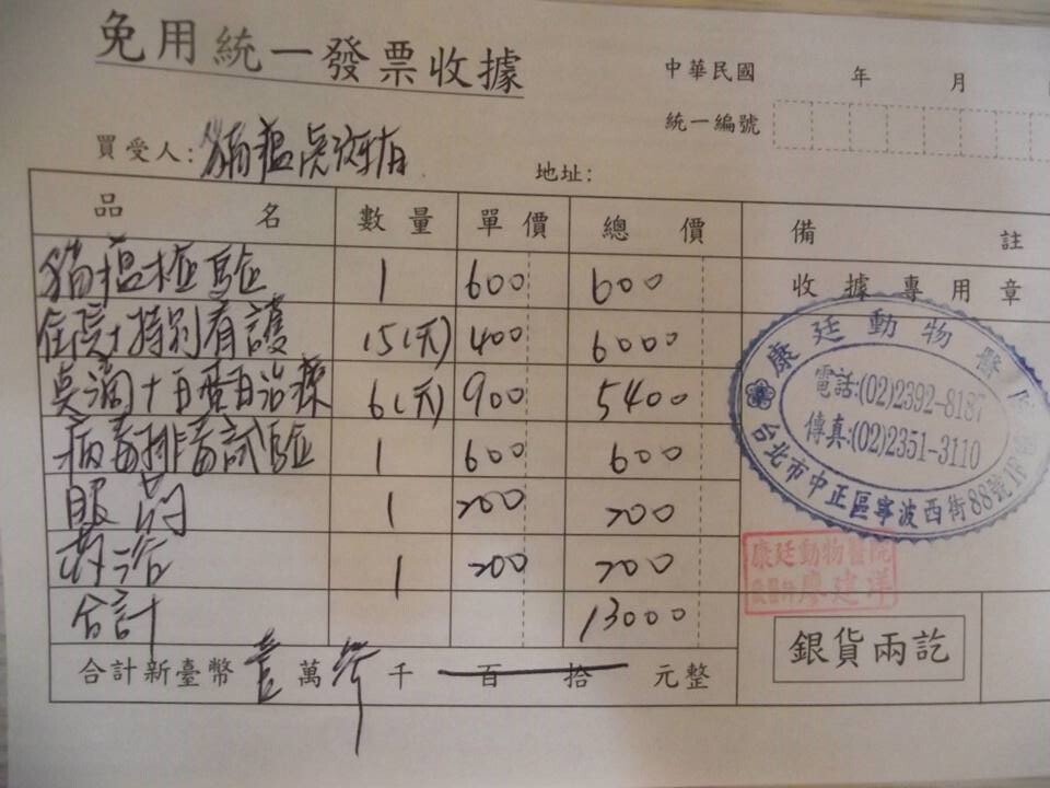 也因為貓瘟是傳染疾病,需個別關籠.需很重視消毒,需特別照顧,所以費用會比較高,謝謝協會的醫助幫忙,醫療費用需要善心人士的幫忙.感謝感謝!