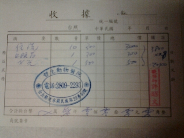 貓咪從7/18住院至8/11共計25天。醫療費用志工付現金3000元,還有17000元需要大家的幫忙,謝謝您~~~