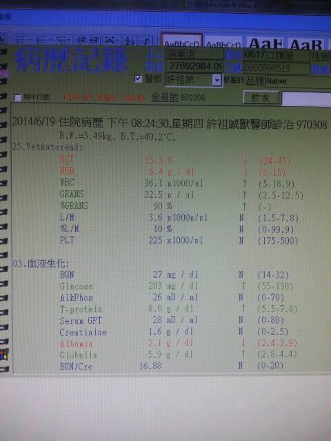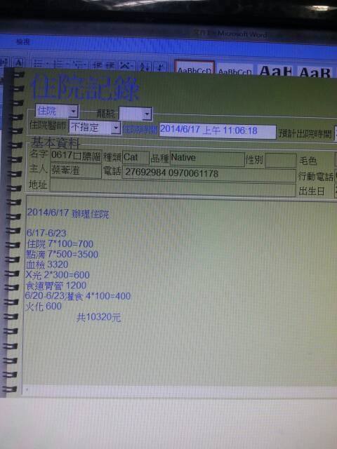 主題: 口炎完全不進食老貓 申請者姓名: 陳曉霏 花色: 申請日期: 2014-08-14 19:23:22 申請者部落格: 申請者臉書網址: 所在縣市/合作醫院: 台北市/澄毅動物醫院 治療費用: 10320元 需求人數: 24人 已結案 (2014-09-04 10:07:00) 報名人員: Mark Hsu x2(已付款)、Furby Lin、may(已付款)、may(已付款)、may(已付款)、may(已付款)、Pinion x2(已付款)、Way Chen(已付款)、泰合資訊管理股份有限公司 x2(已付款)、みやびしゅう x2(已付款)、fang7880(已付款)、綠袖、綠袖(已付款)、陳曉霏 x2(已付款)、陳曉霏 x5(已付款)、Bonnie Liu(已付款)、吳雅惠(已付款)、 候補人員: Emily(已付款)、 動物病情說明: 在外面生活的貓