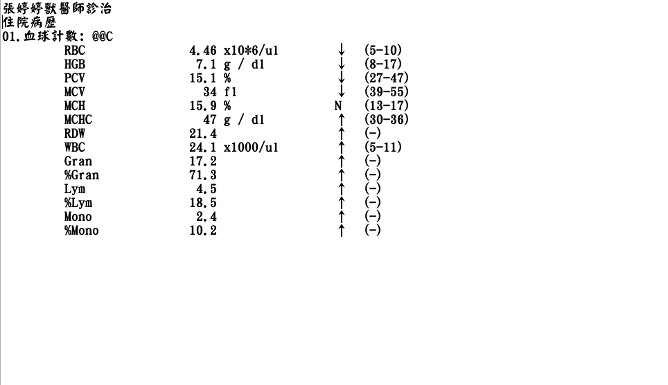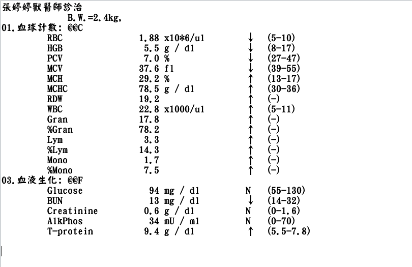 嚴重貧血 .口炎 大概是讓他食慾跟精神不佳的原因