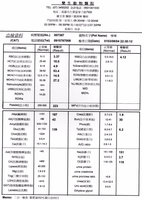 8月10日當天探視咪咪,醫生告知情況已有好轉也有吃東西了,所以跟醫生討論後如狀況持續有好轉,預定13日可接回家中中途照顧,以結少住院費用