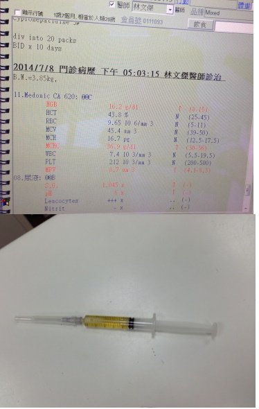 七月初,厚道出現隨地便溺的行為,也不願打理自己,擔心可能是生病,帶至醫院就診,血檢數值正常,抽膀胱的尿液檢驗,發現尿中有白血球,有發炎的反應,也將尿液送實驗室做細菌培養,醫師建議帶回給予比較多的水分攝取,並觀察是否是因為沒有厚肢活動時摩擦造成細菌感染,一周後報告出來,並沒有嚴重病菌,持續觀察照顧,醫療費用還請各位幫忙。