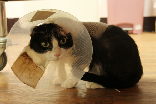 二月小朋友發情叫得好可憐,努力餵食但體重增加有限,先安排手術結紮。