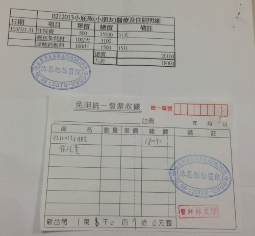 主題: 大面積燙傷的小朋友第七階段費用(內有血腥照..慎入) 申請者姓名: 臺北市支持流浪貓絕育計劃協會 花色: 申請日期: 2014-08-13 20:54:17 申請者部落格: 申請者臉書網址: 所在縣市/合作醫院: 台北市/沐恩動物醫院 治療費用: 18090元 需求人數: 20人 已結案 (2014-09-04 10:06:06) 報名人員: Eliza(已付款)、Ting Huang(已付款)、lulumi(已付款)、玥青(已付款)、陳小咪 x4(已付款)、Patrick x3(已付款)、vivian(已付款)、Shirley Lin、SweetTpg(已付款)、BigMao(已付款)、Kiki Liang(已付款)、Lo Carol(已付款)、Irene(已付款)、joalnin2 x2(已付款)、Cathy Chang(已付款)、 候補人員: Irena、Prince Chen、 動物病情說明: 2/1貓貓因燒傷跑來家裡求救,立即送往醫院,醫生研判應該是遭人惡意潑油放火,左耳已完全燒爛,沿著頸部到上背部有四級燒傷,醫院說這需要長期的治療,至少兩周的時間幫助牠將組織長好,至少需要1個月以上才能完全復原,且復原後需要重建左耳,目前醫藥費用是個未知數。