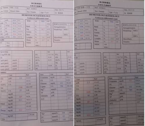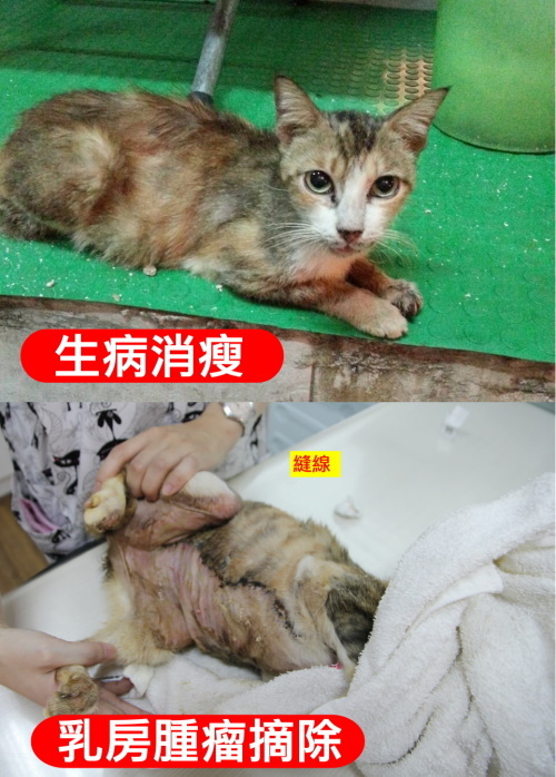 主題: 腎衰竭的天空 申請者姓名: 臺北市支持流浪貓絕育計劃協會 花色: 申請日期: 2014-08-13 22:24:50 申請者部落格: 申請者臉書網址: 所在縣市/合作醫院: 台北市/極光動物醫院 治療費用: 12465元 需求人數: 28人 已結案 (2014-09-04 10:05:55) 報名人員: 牛兒(已付款)、LuLu(已付款)、Patrick x4(已付款)、Way Chen(已付款)、vivian(已付款)、鈴鈴(已付款)、小四 x4(已付款)、Sunny Chen(已付款)、JuJu x4(已付款)、小凱西(已付款)、Vincent Ho(已付款)、Moonin(已付款)、Chloe Sun(已付款)、apple x4、Cary x2(已付款)、Konana(已付款)、Ameba Chen(已付款)、alicelin x2(已付款)、 候補人員: 動物病情說明: 中和市保健路一隻不斷生育的母貓,四年來生了不少小貓,每次懷孕狀況就愈來愈差,已經沒有辦法打理自己,指甲深深的插入指頭裡行走不便,感覺越來越虛弱,志工前往協助捕捉終於在102/8/7日順利捕捉,送醫發現貓咪有乳房腫瘤,經討論決定先手術摘除單側乳房送化驗,術後狀況良好,也長胖,8/24日貓咪突然不吃不喝,經檢驗腎指數超標機器無法檢驗出,狀況急速惡化,緊急通知餵養人前往探視,當天貓咪受到鼓舞,開始進食,一周後腎指數穩定,雖然報告顯示是惡性腫瘤,復發率極高,我們仍希望在最後的日子讓貓咪舒服快樂,目前每天需打水125CC定期回診監控指數,X光追蹤,術後四個月腫瘤轉移,身體開始出現不明分泌物,手術摘除另一側乳房,接受化療,目前腫瘤沒有擴散的跡象,但腎指數卻節節飆升,從原本維持bun50、60衝到100,cre從4點多到六,狀況不是很樂觀,又因為循環不好無法給予太多的皮下注射,指數上上下下,幾經思考,為了讓天空獲得更好的生活品質,享受大口吃罐頭的幸福,並不強迫給予不舒服強迫的醫療,每天給予皮下注射、三天一次紅血球生成素(EPO),只要用毛巾把天空的頭蓋住,就可以操作,可以偷偷摸她的屁屁、剪指甲、洗澡都沒有問題,但要"餵藥"就完全沒有辦法,只能加在食物裡面,三不五時會給點小點心,天空會激動喵喵叫,小尾巴抖抖抖的很興奮,三兩口吃光光,雖然指數不漂亮,但他還是大吃大喝,體重一直維持在四公斤,6/3天空吐得很厲害,也不願意吃東西,緊急送醫檢查胰臟炎檢驗為陽性,醫師懷疑是慢性胰臟炎,改變飲食給予低脂肪的罐頭和食物,持續給予皮下注射,所幸狀況慢慢舒緩,也沒有在嘔吐,慢慢也就跟以前一樣吵著要吃小零食,偶爾會出來散步溜搭溜搭很快活。