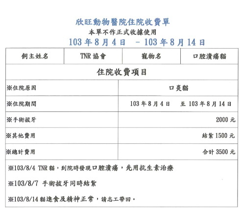 戶名:社團法人臺北市支持流浪貓絕育計劃協會