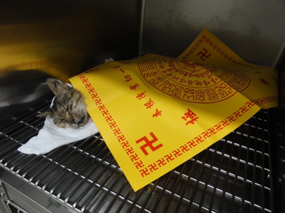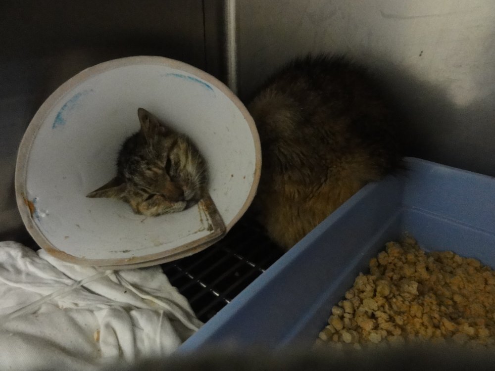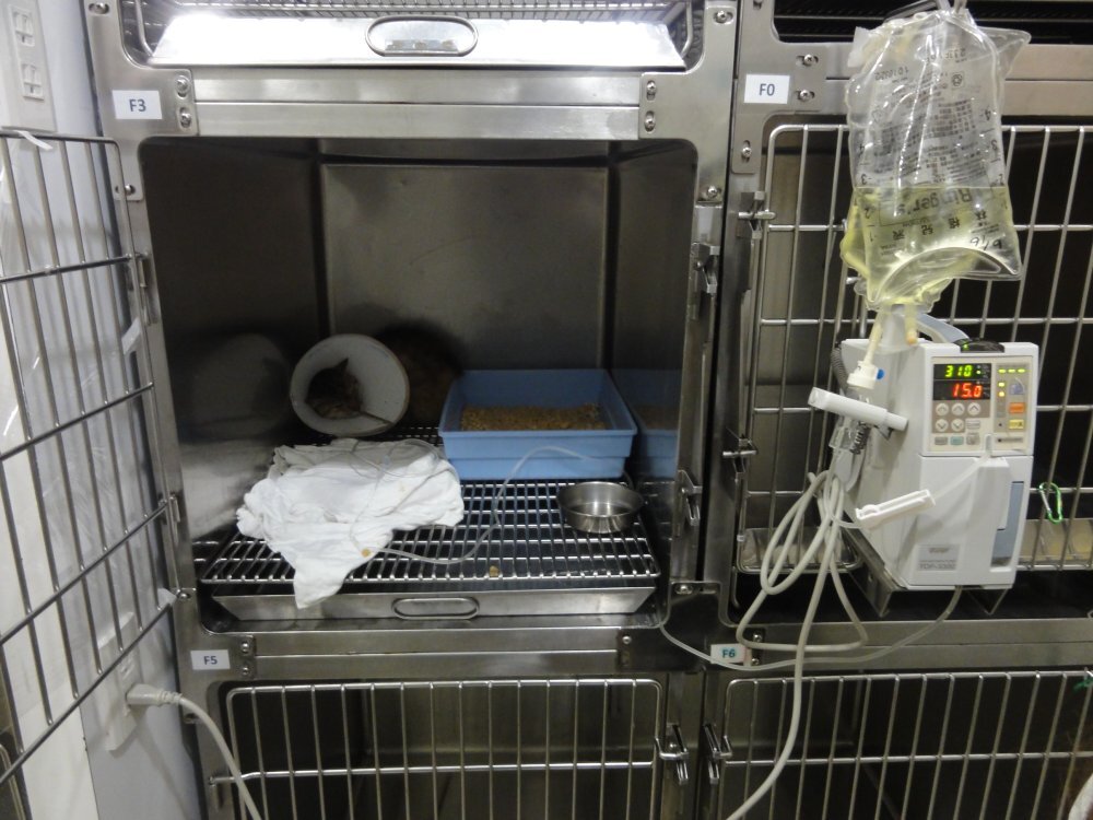 抓到他時,覺得他有些感冒,簡小姐安排於醫院做噴霧治療,住院其滿後,仍不適合野放,先暫置於家中,過幾日又因咳嗽症狀,又帶去醫院做治療,發現腎臟有腫大現像,又有白血球過高情況,經過幾天的治療,仍不見好轉,經與協會溝通,轉院治療。