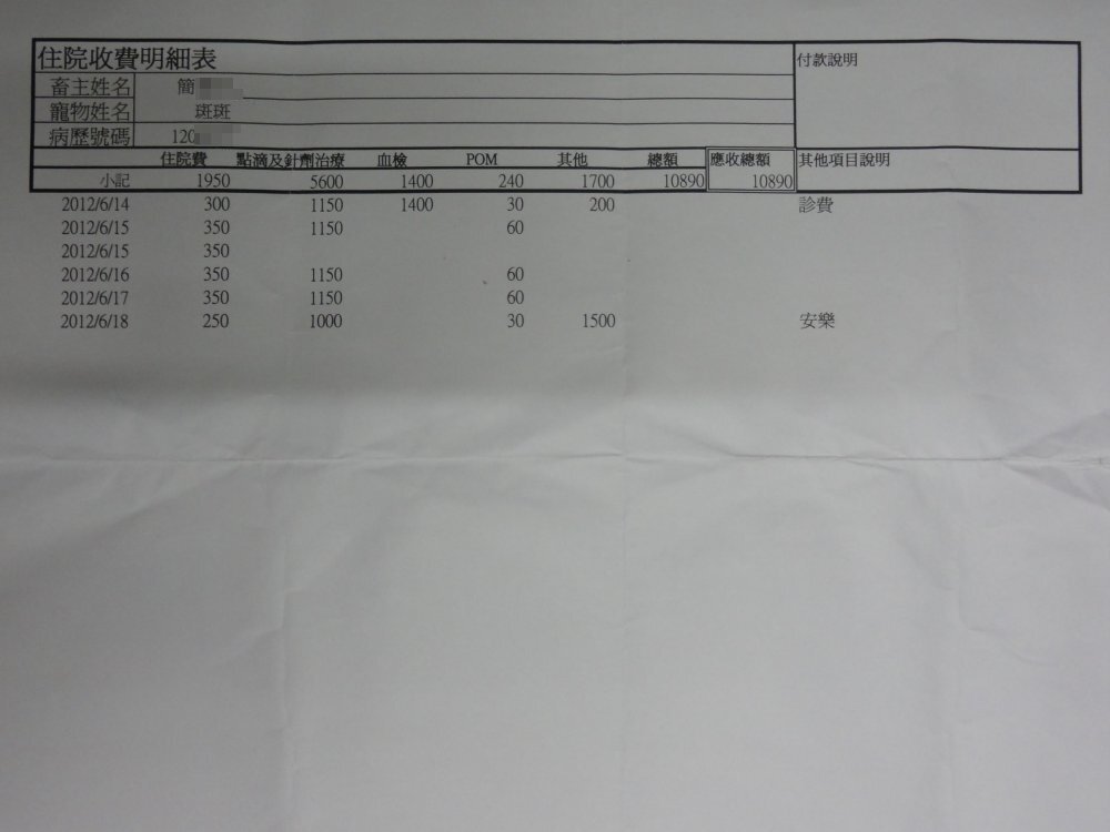 轉院後情況仍不見起色,各種檢驗都不理想,經由醫師建議,讓斑斑能不再痛苦,好好的走,由簡小姐陪著他,平靜沒痛苦的走完最後一程。