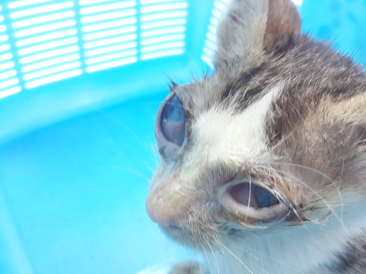 可是鼻膿部分有稍微軟化一些 可這孩子總是會不自覺的往後仰 但每每去替他整理病房餵食牠時 他總是親人的撞著 蹭著你照顧他的手