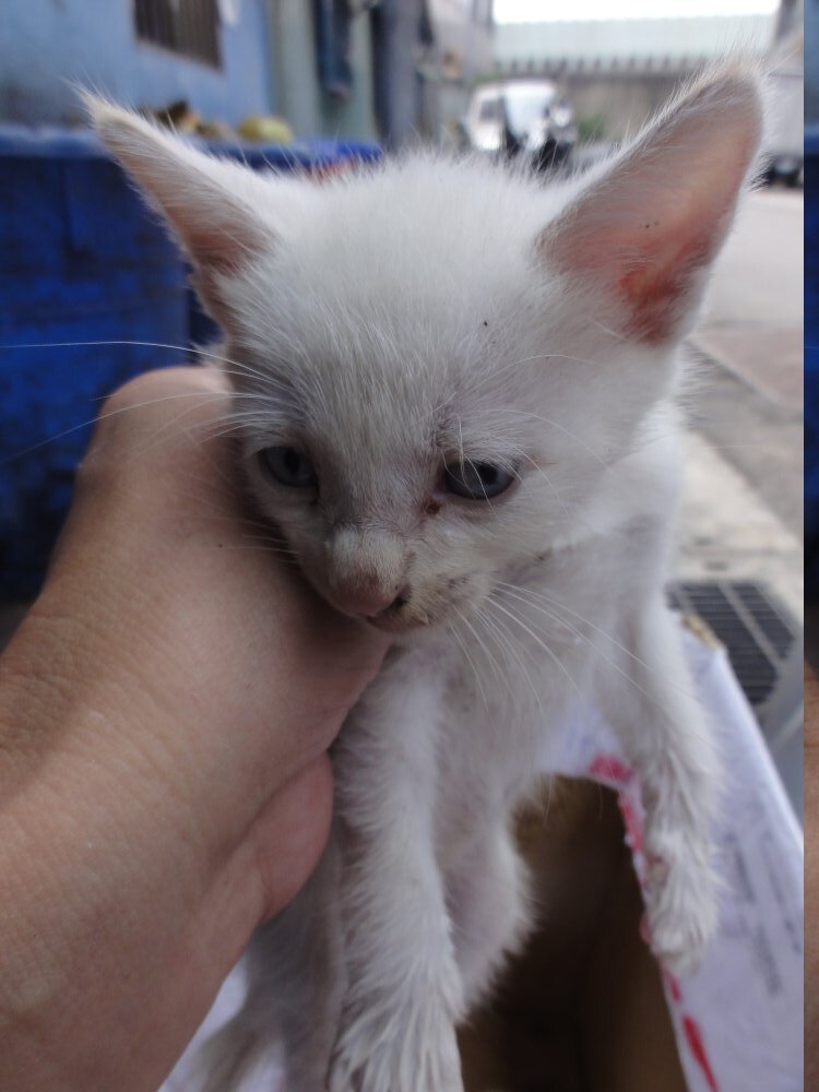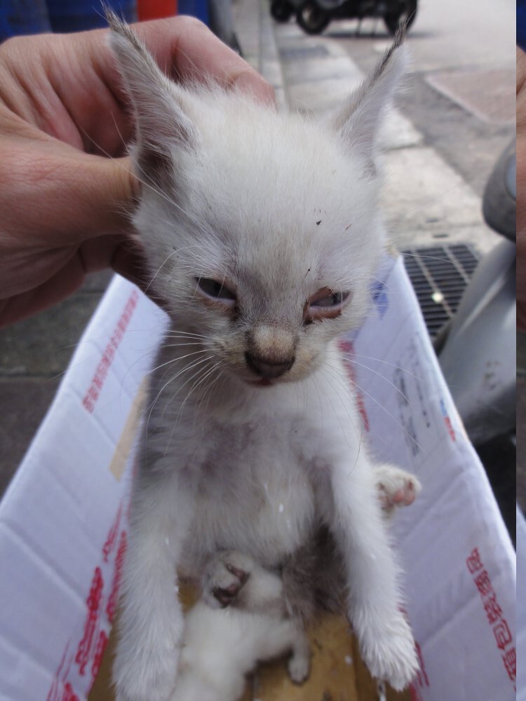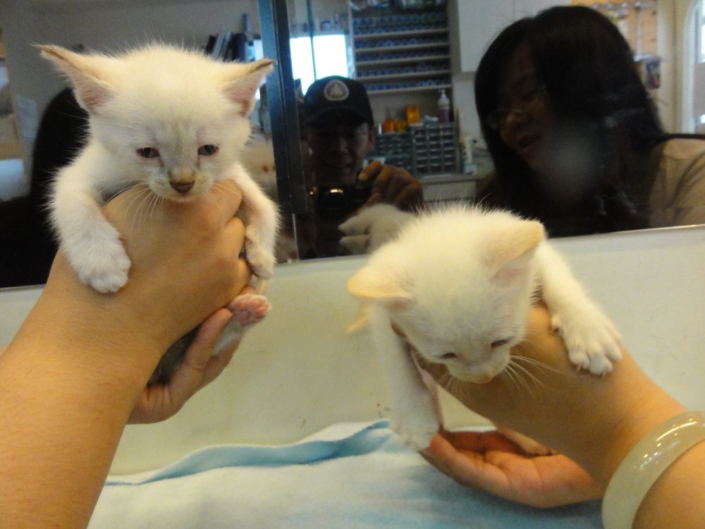 在棄置在垃圾場的一小白貓,陳太太發現,請我幫忙送醫及後續中途安置,但手上還有很多小貓需要送養,但看二隻小白貓,被放在垃圾場,沒有人處理的話,將必死無疑,還是硬著頭皮,先接下來,送醫院檢查,再找人中途幫忙了!