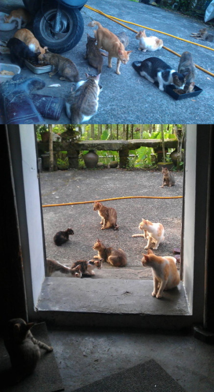 現在貓群會聚集 主要是我奶奶於五年前過世 家中狗狗送人後 貓咪就來了