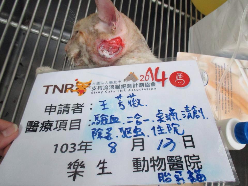 主題: 已捕捉受傷浪貓就醫需申請醫療協助 申請者姓名: 王芳薇 花色: 申請日期: 2014-10-02 20:40:42 申請者部落格: 申請者臉書網址: 所在縣市/合作醫院: 高雄市/樂生動物醫院 治療費用: 16300元 需求人數: 19人 已結案 (2014-11-12 11:39:31) 報名人員: 春卷(已付款)、Misu Sweet(已付款)、欣小妮(已付款)、Yuchun Lin(已付款)、Daniel Tsai(已付款)、Prince Chen(已付款)、Cecilia Shih x2(已付款)、小黃(已付款)、盧(已付款)、歪歪(已付款)、lunyi(已付款)、zining x2(已付款)、vivian(已付款)、Ying x4(已付款)、 候補人員: 動物病情說明: 發現時耳後明顯外傷