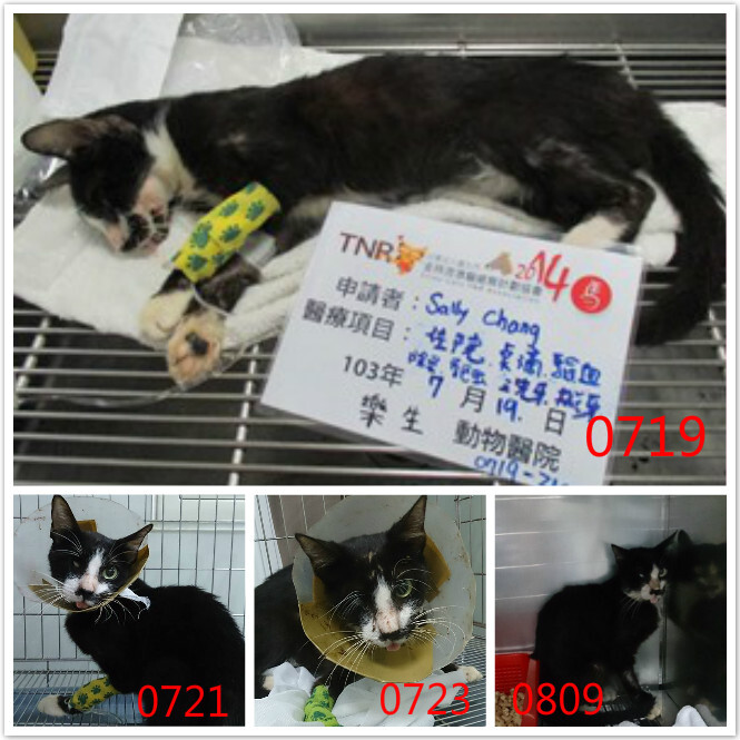 主題: 獨眼.口腔腫瘤惡臭的賓士貓 申請者姓名: Sally Chang 花色: 申請日期: 2014-10-29 01:30:51 申請者部落格: 申請者臉書網址: 所在縣市/合作醫院: 高雄市/樂生動物醫院 治療費用: 24480元 需求人數: 27人 已結案 (2015-02-24 12:27:27) 報名人員: 小玥(已付款)、邱于倢(已付款)、Tina Nai-hui Pan(已付款)、Sputnik Chang(已付款)、鈴(已付款)、嘟哇李(已付款)、嘟哇李、洪嘉淑(已付款)、Cat Wang x2(已付款)、kikineko(已付款)、明旺工程行(已付款)、ERic YU(已付款)、由美晴子(已付款)、劉玉婷(已付款)、愛芹(已付款)、牡羊先生(已付款)、Rean Wu(已付款)、Ching Tseng x9(已付款)、老皮(已付款)、 候補人員: 動物病情說明: 少了一隻眼睛的賓士,