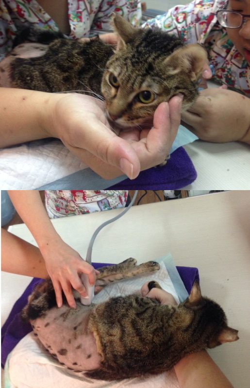 6月底發現乖妹的腹部手術傷口縫線處逐漸腫脹似有硬塊,馬上掛號極光動物醫院回診。