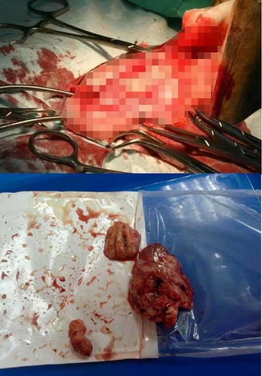 於7月2日安排乖妹二次手術,取出腹部腫塊並送化驗,並以低過敏縫線縫手術合傷口。