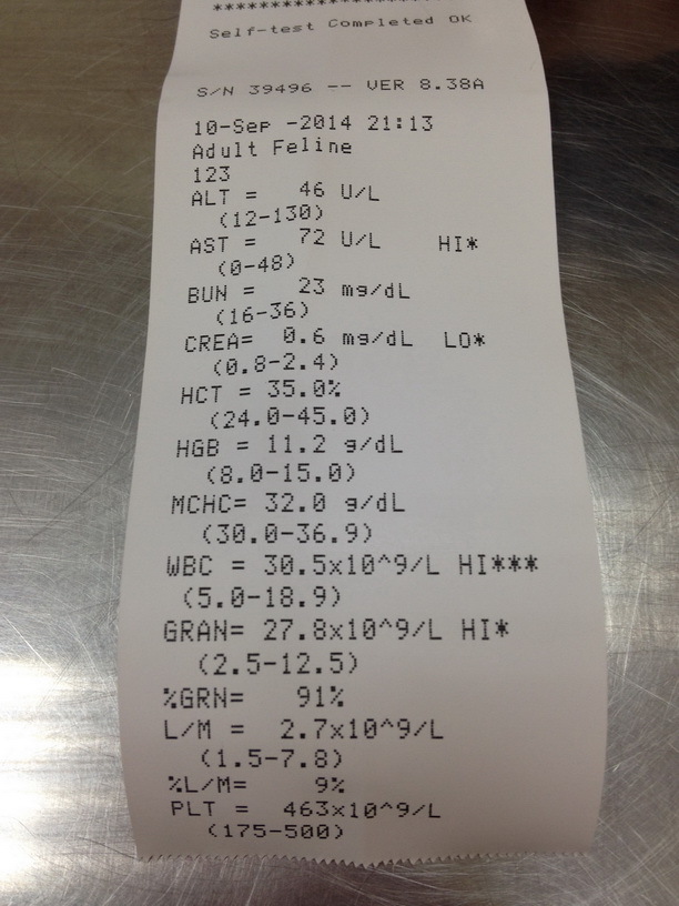 主題: 無食慾耳疥蟲口炎有愛滋的親人玳瑁母貓 申請者姓名: 大笨牛 花色: 申請日期: 2014-09-16 19:14:08 申請者部落格: 申請者臉書網址: 所在縣市/合作醫院: 新北市/德欣動物醫院 治療費用: 5500元 需求人數: 7人 已結案 (2014-11-12 11:56:02) 報名人員: Yuchun Lin、Yuchun Lin(已付款)、Emily Kuo(已付款)、Becky x2(已付款)、陳憶如(已付款)、謝雨妡(已付款)、Alley Chen(已付款)、 候補人員: 動物病情說明: 在新店收容所接小貓時,被她瘦小的身驅給嚇到,但她是那麼的親人,想說接出來也想幫她找一個家,誰知道好景不常,貓咪的食慾不太好,我一湊近聞到嘴巴很臭的味道,醫生一看,原來是口炎,怪不得那麼瘦,我一直以為她是幼貓,醫生判斷她是近5歲的成貓,驗了二合一,竟然是呈陽性,貓愛滋,而且她還沒有節紮,耳朵也有耳疥蟲,住院期間白血球很高,醫生有給予抗生素做治療。