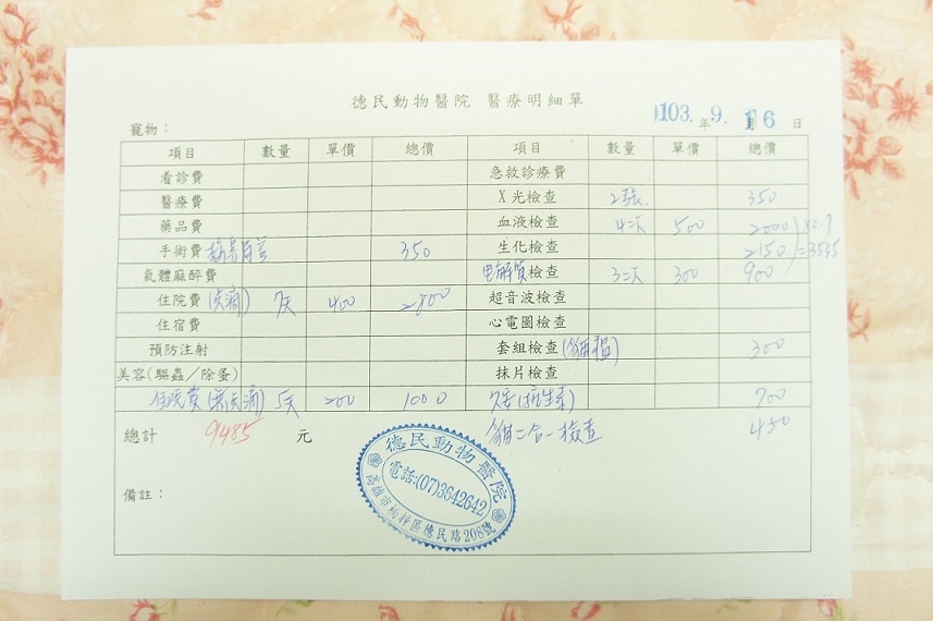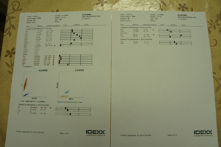 目前正在德民醫院接受治療中動物近況說明: 9/4