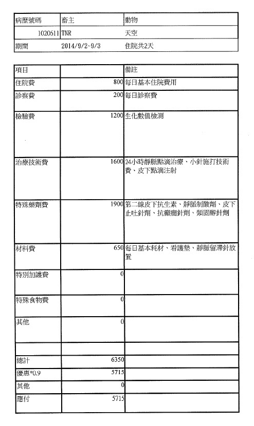 送醫後,發現是乳房腫瘤、以及腎衰竭等問題。或許是緣份,天空卻奇蹟似的陪伴我們許久,且狀況維持不錯。