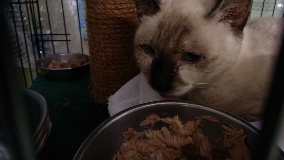 麵包超人是進行TNR計劃時發現的貓咪,是隻漂亮的暹羅貓,但鼻子卻異常得腫脹!送醫檢查後發現,乳線腫瘤已移轉到鼻腔。
