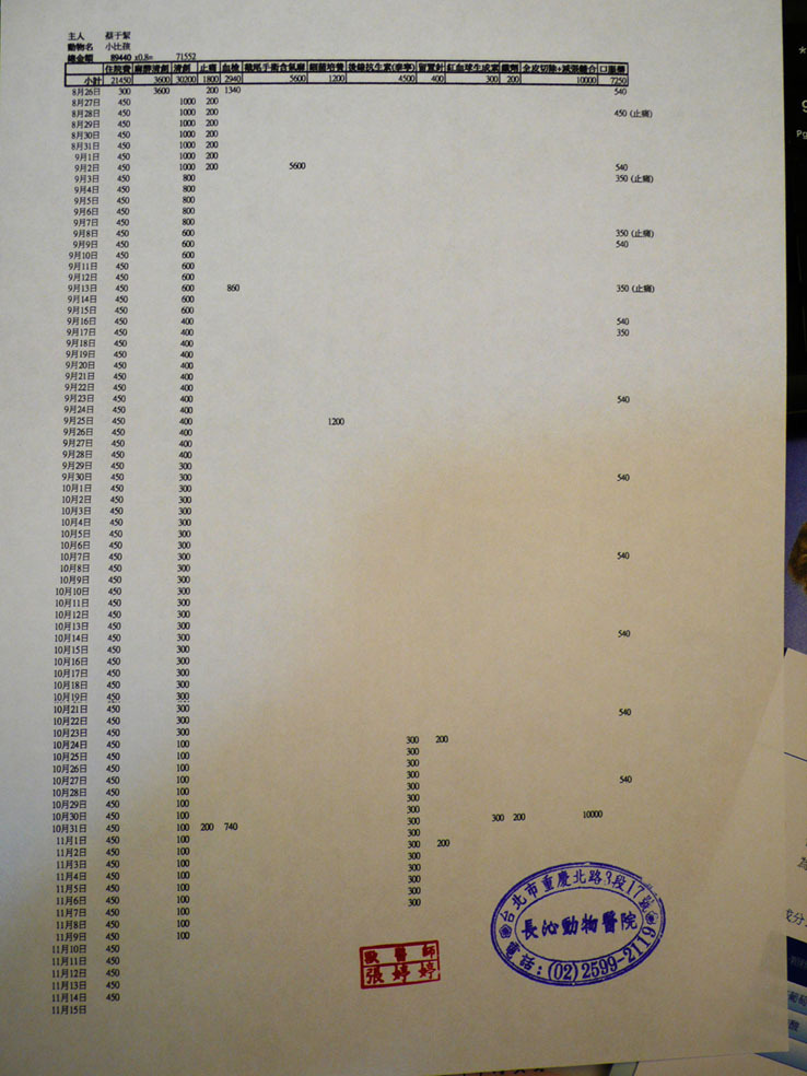 直到8/21日,小比孩突然出現在餵食區,她的毛髮凌亂,叫聲也不一樣,身上還有蒼蠅,我趕緊送往就近醫院。