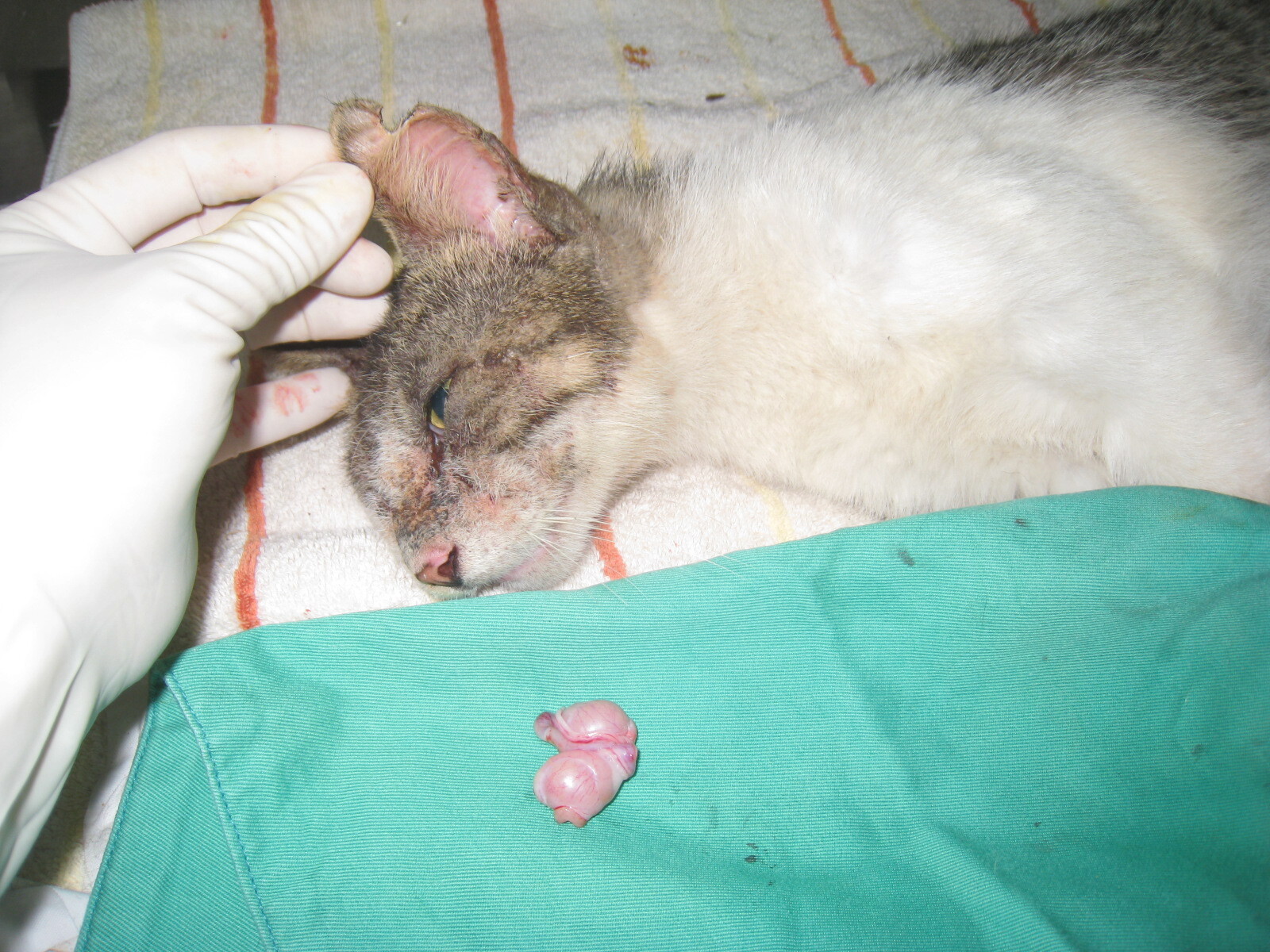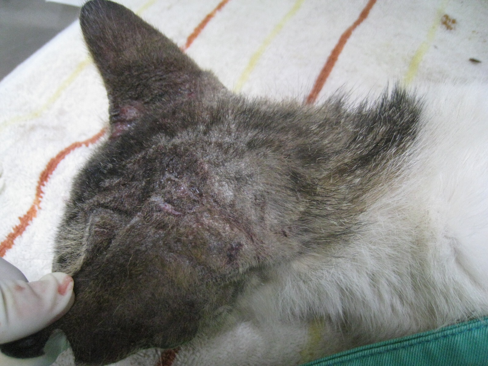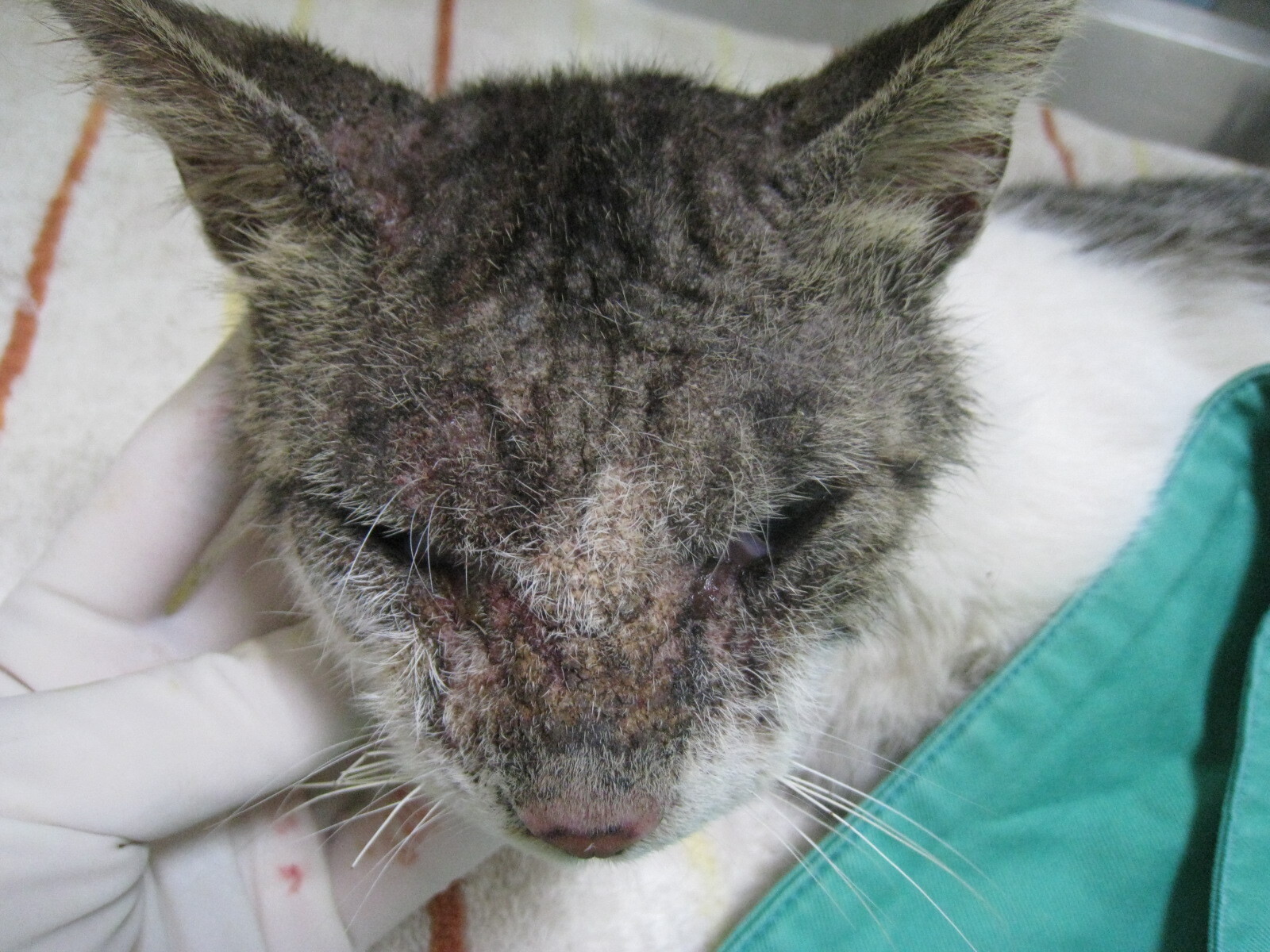 主題: 台中望高寮嚴重黴菌感染貓 申請者姓名: 吳育純 花色: 申請日期: 2012-03-04 01:26:05 申請者部落格: 申請者臉書網址: https://www.facebook.com/profile.php?id=100000106942160 所在縣市/合作醫院: 台中市/佳恩動物醫院 治療費用: 4200元 需求人數: 5人 已結案 (2012-03-14 16:00:00) 報名人員: Pei Yin(已付款)、Chiao Yun Yu(已付款)、Amber Tsai(已付款)、Jeane Tuan(已付款)、Truffle White(已付款)、 候補人員: Layla Lu、 動物病情說明: 這是在台中望高寮捕抓的TNR貓咪