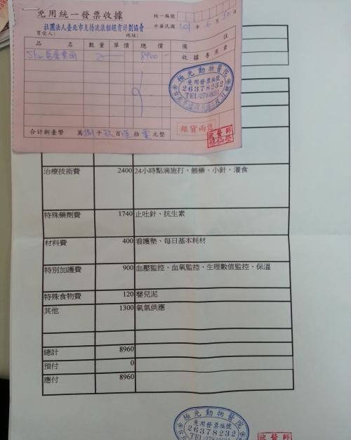 另外,楊醫師贊助4千元醫藥費,