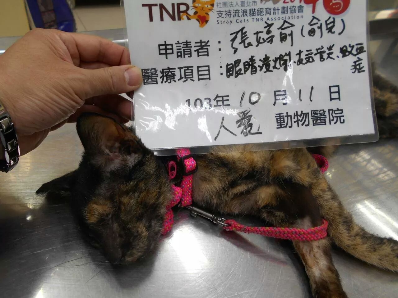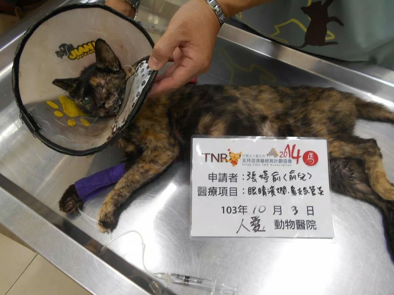 半夜餵養區的玳瑁媽媽的2小貓,上次下大雨後一直沒在看到,直到昨天半夜餵養時又看到,正準備餵食,發現2小貓雙眼非常嚴重感染,不就醫恐有失明危險。動物近況說明: 玳瑁媽媽10/16出院了,傷口復原良好,白血球也降回正常值了,玳瑁媽媽還是保持一慣的兇,當天跟小朋友一起R回嘍∼都有出來吃飯飯。麻煩大家幫幫協會醫助跟結紮費用,拜託大家了∼