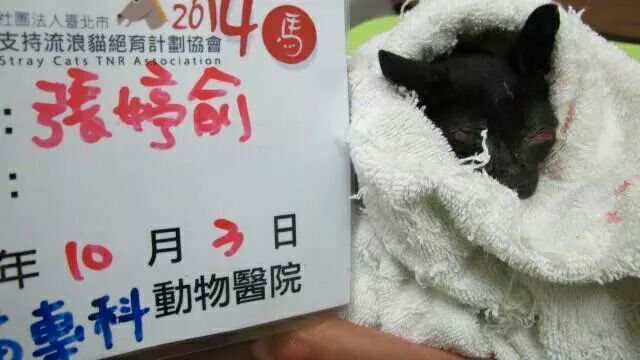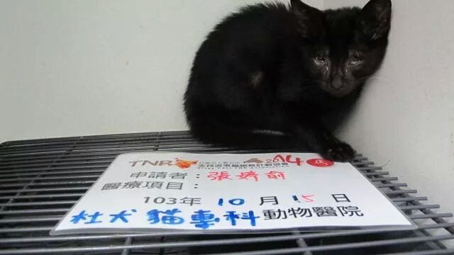 主題: 雙眼感染非常嚴重2小貓之小黑貓 申請者姓名: 張婷俞 花色: 申請日期: 2014-10-21 21:15:55 申請者部落格: 申請者臉書網址: 所在縣市/合作醫院: 高雄市/恩澤動物醫院 治療費用: 5625元 需求人數: 7人 已結案 (2015-02-24 12:21:58) 報名人員: 迴向給大頭.妹妹.白面 x2(已付款)、Paola(已付款)、甜心倫(已付款)、許友鄉(已付款)、潘潘 x2(已付款)、 候補人員: 動物病情說明: 半夜餵養區的玳瑁媽媽的2小貓,上次下大雨後一直沒在看到,直到半夜又看到,正準備餵食,發現2小貓的雙眼非常嚴重感染,不就醫恐怕會失明,當下馬上回去拿誘捕籠誘捕,還好玳瑁媽媽連同2小貓都有抓到,送協會配合醫治療中。