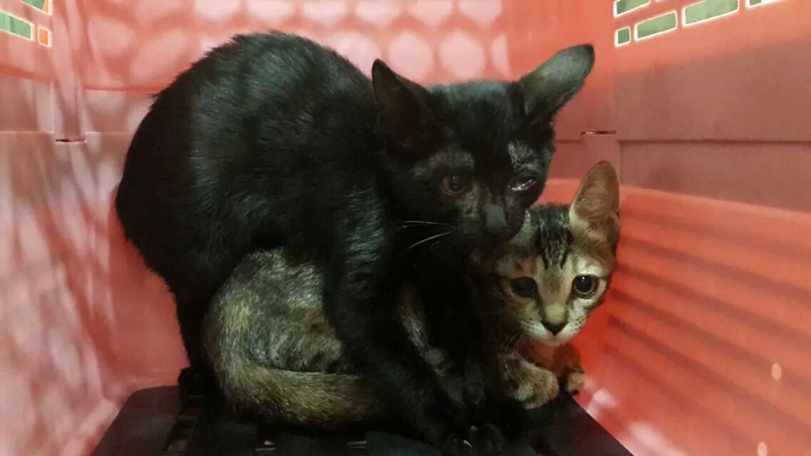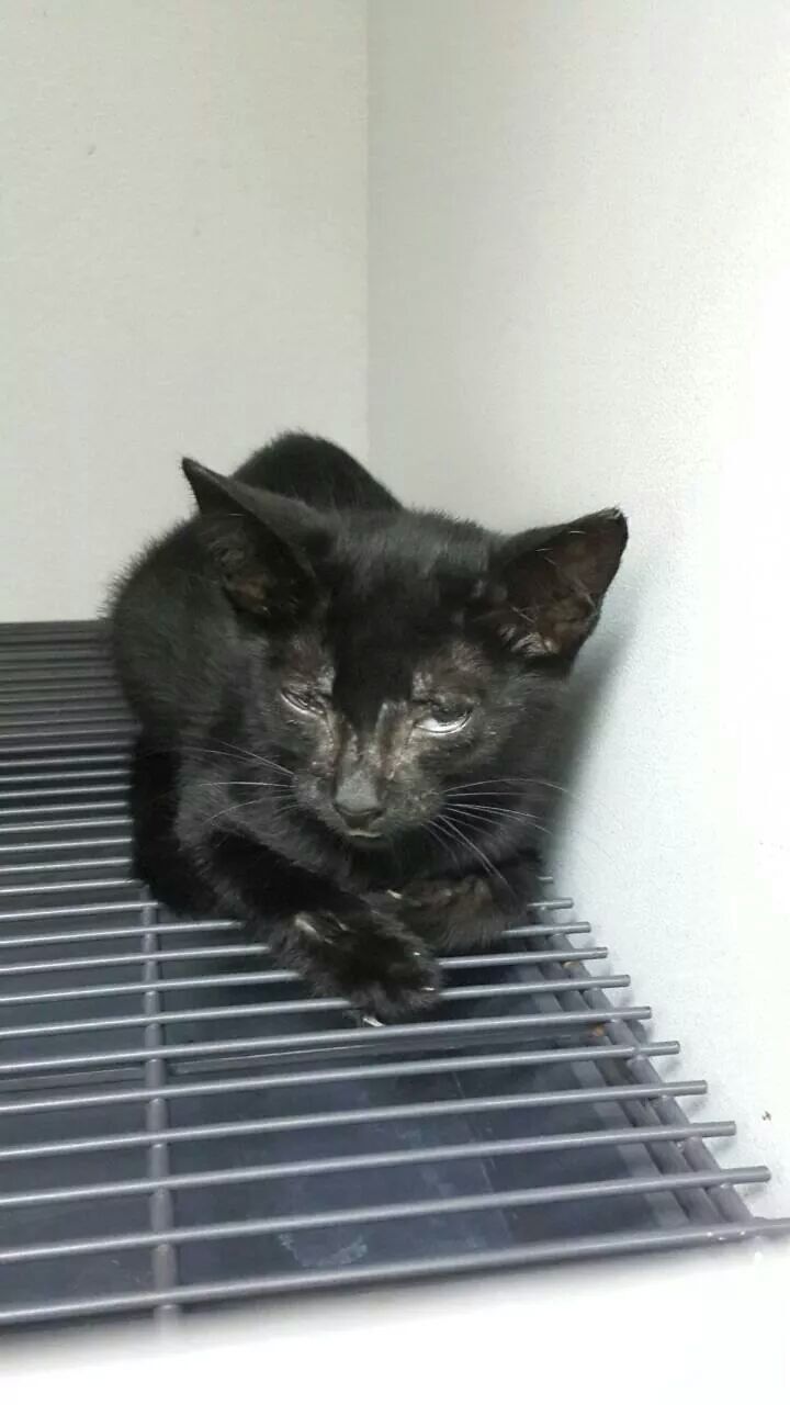 小黑貓目前狀況0.7公斤,精神差,雙眼結膜感染,紅腫,呼吸道感染。動物近況說明: 2小貓之前預估1個禮拜費用,但2小貓尚未痊癒,醫生建議延長住院治療一週。