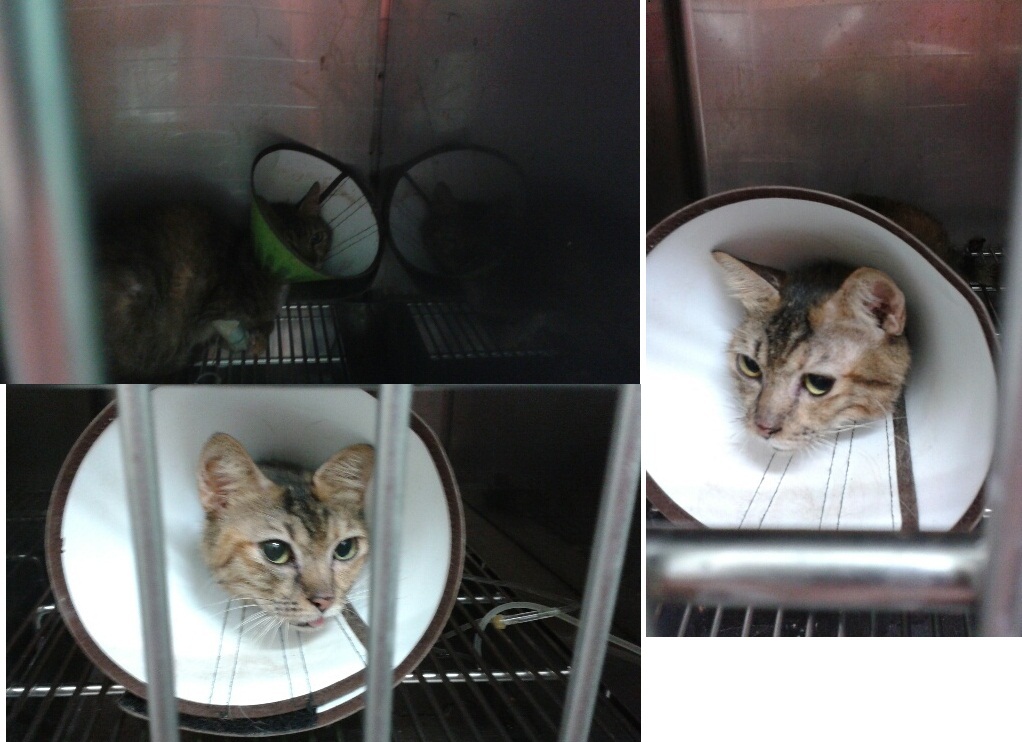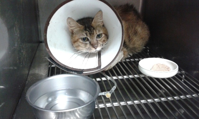 主題: 口水直流不進食的花虎斑 申請者姓名: 林善秋 花色: 申請日期: 2014-10-14 16:41:53 申請者部落格: 申請者臉書網址: 所在縣市/合作醫院: 高雄市/銀星動物醫院 治療費用: 7000元 需求人數: 9人 已結案 (2014-11-12 11:38:09) 報名人員: Salome Chang(已付款)、Lulu Hsieh(已付款)、Hsini Lee x2(已付款)、林欣蓉(已付款)、Joba Huang(已付款)、Ying x3(已付款)、 候補人員: 動物病情說明: 香香是我未成為TNR志工時就開始餵食的浪貓,已結紮但沒剪耳,至今已逾6年時間,近來好一陣子未出現,讓人擔心是否發生意外,今天才又碰到她,但她卻完全不吃,滿臉口水,且身體臭臭,精神狀況也不佳,趕緊用毛巾加網子捕捉送醫。