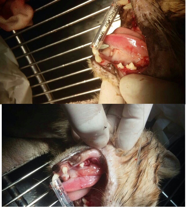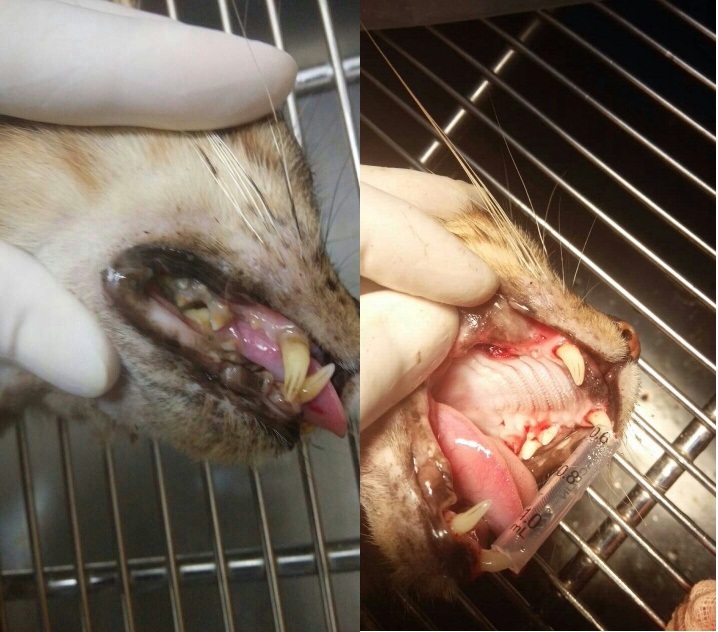 10/6-7食慾恢復有8成,醫生覺得狀況許可,10/7進行拔牙及洗牙療程,拔了約7-8顆爛牙,看來口腔問題困擾貓咪已久