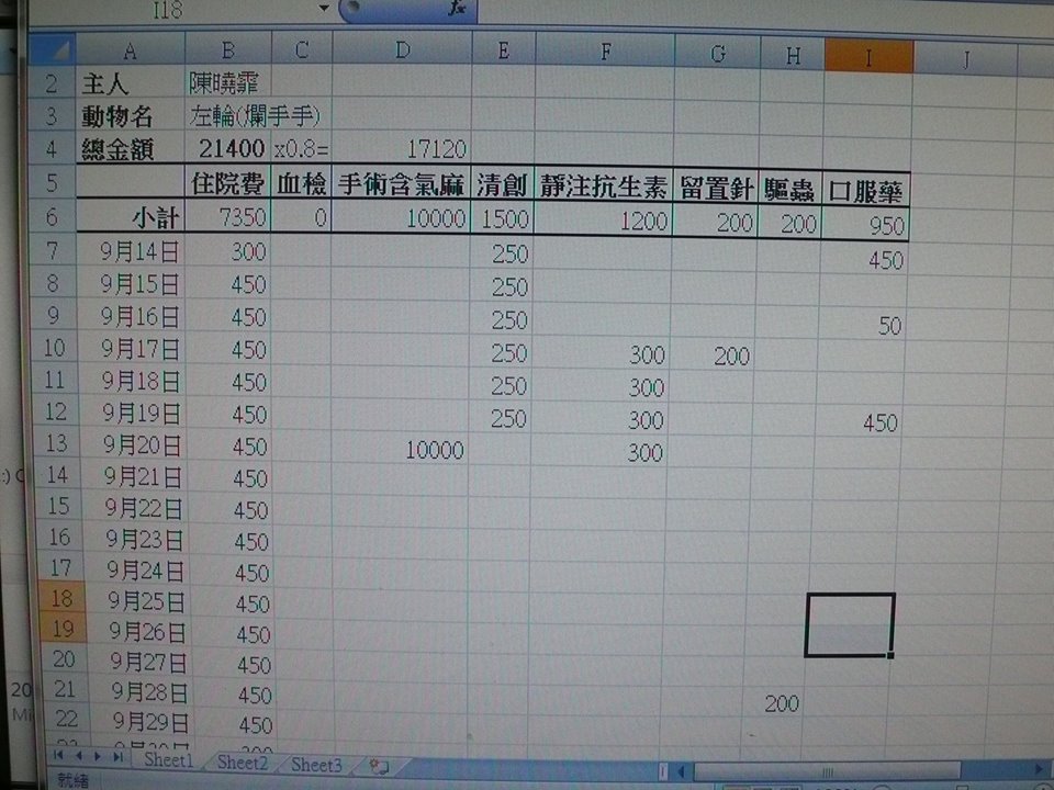 主題: 手爛 背傷 小小橘 申請者姓名: 陳曉霏 花色: 申請日期: 2014-10-23 05:10:06 申請者部落格: 申請者臉書網址: 所在縣市/合作醫院: 台北市/長沁動物醫院 治療費用: 17120元 需求人數: 19人 已結案 (2015-02-24 12:21:49) 報名人員: Emily Yen x2(已付款)、Emily Yen x2、微光(已付款)、惠惠(已付款)、高永顗(已付款)、Sih-ying Lin(已付款)、Kate Hsu(已付款)、Debbie Lin(已付款)、吳紫翎(已付款)、假不妙(已付款)、Wendy Kao(已付款)、Pinger x6(已付款)、歪歪 x2(已付款)、 候補人員: 動物病情說明: 基隆剛下過一場大雨