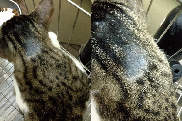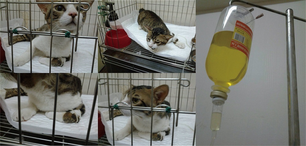 貓咪還是處於貧血與間斷發燒的狀態,眼睛些許感染,皮膚上的傷口也有黴菌感染,
