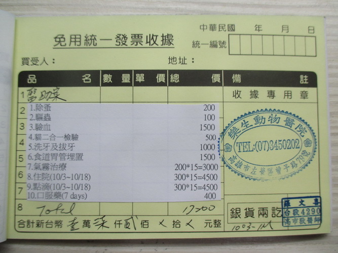 謝謝樂生動物醫院的細心照顧,阿虎的醫療費用還望大家多多幫忙,感謝!