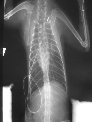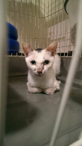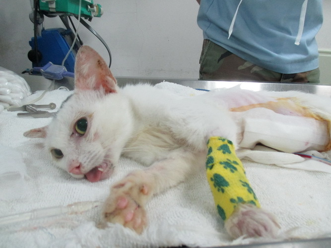 而這隻小黑帽,從外觀看起來沒甚麼外傷,但異常的喘,我趕快帶她前往樂生,當天下午醫生立刻打給我說,小黑帽很不妙!片子一照發現她出過車禍,很大的撞擊導致他的內臟全部往胸腔擠壓,所以牠才會異常的喘,這樣的症狀必須開刀,不開致死率百分百,但更麻煩的是小黑帽過瘦,牠目前才1.3公斤,加上有嚴重的流鼻涕和發燒症狀,所以沒辦法立刻施以手術,怕她承受不了,醫生建議先治療牠的流鼻涕和發燒,等到痊癒了且體重有增加了點,才會開刀。