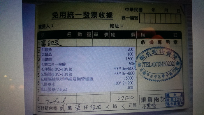 住院這段期間,非常感謝樂生動物醫院醫生和助理的細心照顧,小 黑帽的醫療費用還望大家多多幫忙
