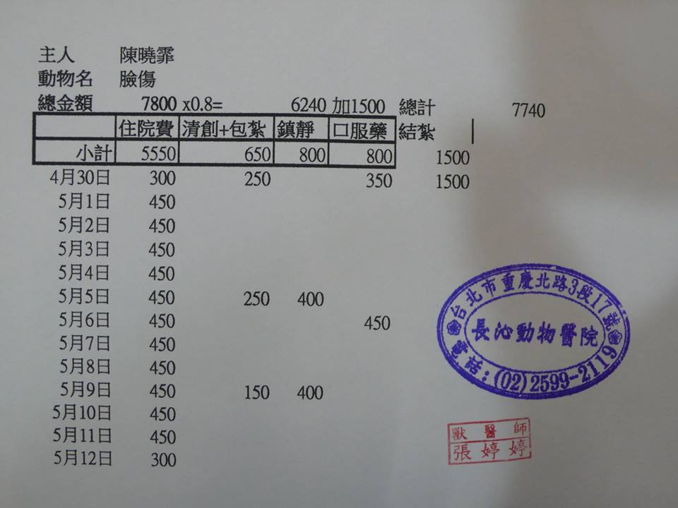 主題: 臉爛一大塊 申請者姓名: 陳曉霏 花色: 申請日期: 2014-10-27 17:21:38 申請者部落格: 申請者臉書網址: 所在縣市/合作醫院: 台北市/長沁動物醫院 治療費用: 7740元 需求人數: 9人 已結案 (2014-11-12 11:38:25) 報名人員: 許嘉勻(已付款)、Olivia Hsin-Ling Cho(已付款)、舊椅子(已付款)、Ray0322(已付款)、Choco Chen(已付款)、夏夏(已付款)、Gina Sun(已付款)、林小豬(已付款)、曹小文(已付款)、 候補人員: 動物病情說明: 從小看他長大的孩子