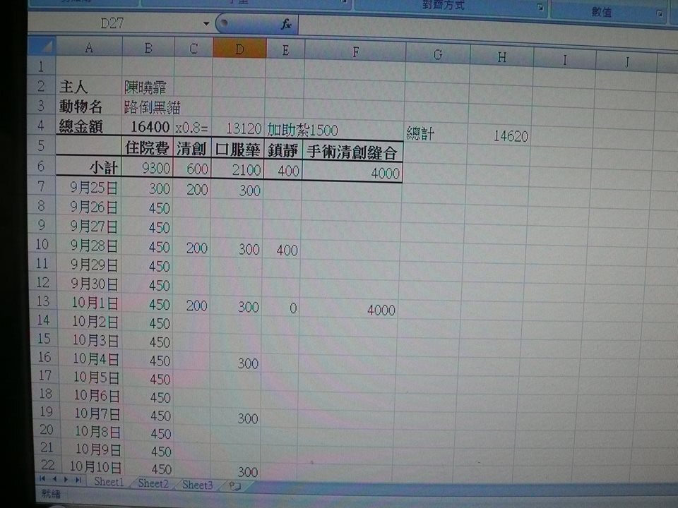 主題: 被割傷的孩子 申請者姓名: 陳曉霏 花色: 申請日期: 2014-10-27 18:17:11 申請者部落格: 申請者臉書網址: 所在縣市/合作醫院: 台北市/長沁動物醫院 治療費用: 14620元 需求人數: 17人 已結案 (2014-11-12 11:38:20) 報名人員: 微光(已付款)、Gina Lu(已付款)、ShihJu Sun x2(已付款)、Sunny Chen(已付款)、Patrick x3(已付款)、林惠雁(已付款)、蘇佩玉(已付款)、Chin Farn(已付款)、lunyi(已付款)、lunyi、胖肯尼(已付款)、如兒(已付款)、Cherry(已付款)、Rebecca Chen(已付款)、徐雅嬪(已付款)、 候補人員: 動物病情說明: 貓的生長環境總是因為人的破壞