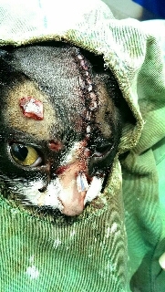 主題: 車禍路倒頭蓋骨破裂的黑白賓士貓 申請者姓名: 黃意如 花色: 申請日期: 2014-11-14 05:26:04 申請者部落格: 申請者臉書網址: 所在縣市/合作醫院: 新北市/哲生動物醫院 治療費用: 12880元 需求人數: 15人 已結案 (2015-02-24 12:20:46) 報名人員: Doris(已付款)、Shan Chou x2(已付款)、Ellen Cheng(已付款)、Roy Chen(已付款)、Rita Huang(已付款)、Shizuka Ho(已付款)、咩咩、Denki(已付款)、Ishan Weng(已付款)、小涵(已付款)、Eva Tsai、Lin-Huei Huang(已付款)、sunnychan(已付款)、謝淑君(已付款)、Candyfloss Hi(已付款)、Ivy Chen(已付款)、 候補人員: 動物病情說明: 星期假日的晚上,在人來人往的舊馬偕機車停車場前,發現一隻路倒的黑白賓士貓,頭上破了一個大洞,滿口是血,還有生命跡象,趕緊打電話求救,把休假的醫生緊急call來。