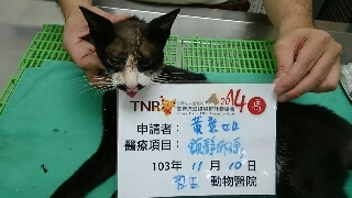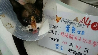 另外貓咪的後腳有脫臼現象,醫師評估不需要開刀,會慢慢癒合,但是跳躍動作會受影響,因為考慮視力幾乎無法恢復,再加上後腳無力,所以日後完全不可能野放,決定由志工帶回貓屋餵養。