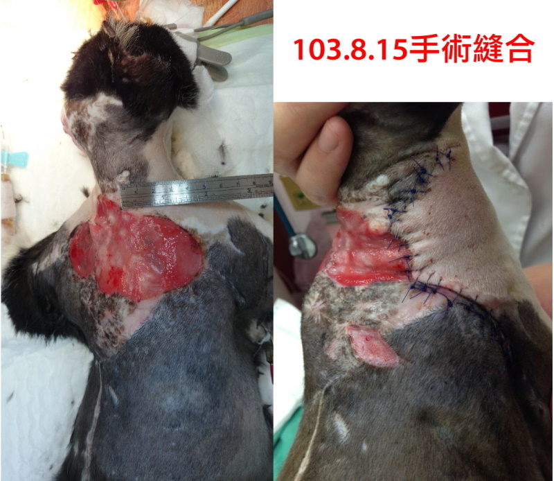 三月小朋友傷口復原狀況減緩,醫師決定於3/21進行皮膚移植手術,將屁股部分健康皮膚移植置頸後,術後用層層較厚的包紮讓小朋友頸部進量不要轉動太大,但小朋友很不配合,原本移植上的皮膚慢慢壞死,雖然傷口縮小了許多,但整體面積還是偏大,目前只能等他慢慢復原,這條復原之路十分慢長,還好這個孩子很樂天,從不喊苦,每天等換藥,然後跟醫師撒嬌,換完藥抓抓癢,吃吃飼料就好開心,還請各位幫忙小朋友的植皮手術費用。謝謝!