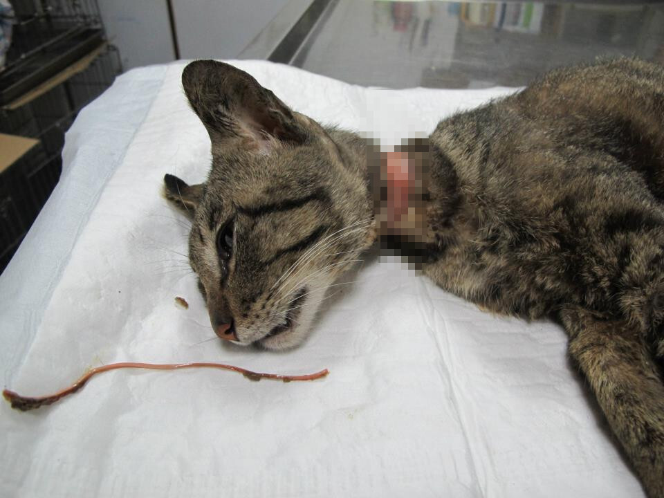 這隻貓咪~發現的時候~脖子被套橡皮筋~