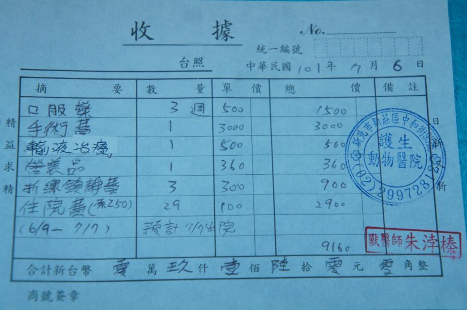 主題: 求救的~橡皮筋貓~請救救我好嗎~我想活下去~ 申請者姓名: 林嘉俐 花色: 申請日期: 2012-07-06 22:41:02 申請者部落格: 申請者臉書網址: 所在縣市/合作醫院: 新北市/護生動物醫院 治療費用: 9160元 需求人數: 22人 已結案 (2012-12-01 21:28:45) 報名人員: raphie、小口愛(已付款)、Hope Liao(已付款)、Michael Chang(已付款)、Forest(已付款)、麵毛匪(已付款)、賴怡安(已付款)、Jeter Chou(已付款)、王駝(已付款)、Chihting(已付款)、Claire Huang(已付款)、Nidya Liu(已付款)、Bear(已付款)、YingJung Hsu(已付款)、Suri Shen(已付款)、許小燕(已付款)、ARu Lin(已付款)、Ficus Hsu(已付款)、劉明玲(已付款)、大妞阿姐(已付款)、陳威銘(已付款)、cat(已付款)、Kuo Liang(已付款)、 候補人員: Bianca Liang、玥楓奈、konana、Esther Lin、 動物病情說明: