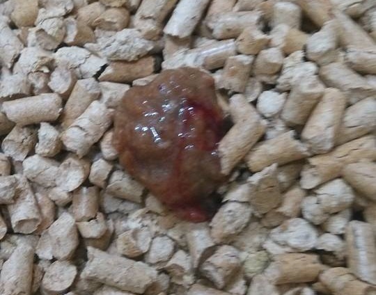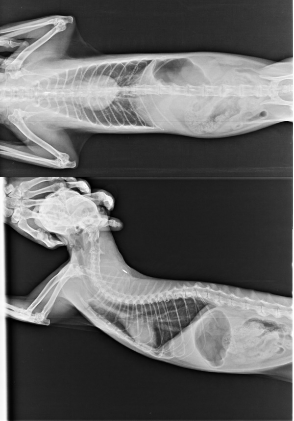 10/12噴噴軟趴趴頭都抬不起來,精神十分萎靡不肯吃東西,拉肚子糞便中有血,摸起來燙燙的,感覺很她很不舒服,緊急送往醫院,一量40度發燒,血檢沒有明顯異常,X光也沒有異物堵塞,先打水住院觀察,隔天噴噴出現嘔吐的狀況,吐完後看起來更累,完全無法動彈的樣子,很虛弱,給予抗生素和止吐針劑,打皮下輸液補充水分和降溫,第三天出現鼻淚水,仰頭呼吸,很明顯是感冒症狀,開始噴霧治療,噴噴身體比較不好,很容易小感冒就變得很嚴重,很嬌弱,這就是刻意培育出的遺傳基因缺陷,讓她一生受盡疾病苦痛,在此呼籲目前噴噴稍稍穩定,已帶回安養之家持續投藥治療。