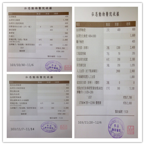 11/20開始不吃,微喘,我將牠送回醫院,醫生建議留院血檢打點滴灌食。
