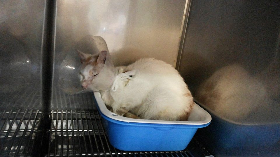 雖然,牠還是無法完全自己進食,但考量繼續住院費用會再增加,動物近況說明: 還好因為牠非常的親人和撒嬌,所以出院後有朋友願意安置並照顧牠。