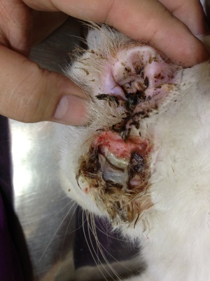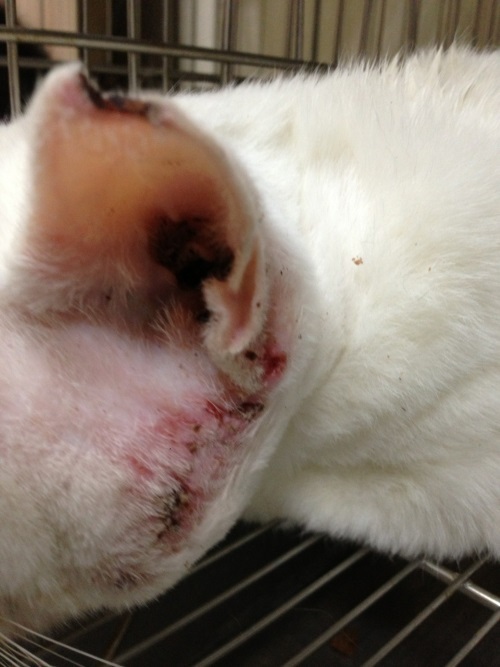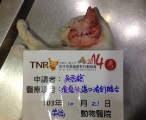 主題: 大白貓潰瘍性傷口清創縫合 申請者姓名: 吳秀蘭 花色: 申請日期: 2014-11-17 16:08:43 申請者部落格: 申請者臉書網址: 所在縣市/合作醫院: 花蓮縣/美崙動物醫院 治療費用: 9900元 需求人數: 12人 已結案 (2015-02-24 12:11:26) 報名人員: 小四 x2(已付款)、Ou Han x2(已付款)、李羽蟬(已付款)、Maxine Chen(已付款)、曹開雲(已付款)、Mic Wazowski(已付款)、艾略特(已付款)、alicelin x2(已付款)、Ying(已付款)、 候補人員: 動物病情說明: 我餵養街貓3年多,這隻貓是今年新來的食客,因為他是公貓所以我一直沒很認真誘捕,這個月開始,我發現他臉上總是髒髒的,但想說浪貓髒髒的也算正常,而且他很兇,我也就不以為意,但這幾天我發現他食慾越來越差,且吃飯時總是一直撥弄他的臉,就想乾脆誘捕帶去結紮順便看看他的臉是不是有傷口,結果,麻醉一下,醫生發現他的傷口又深又大,而且也腐爛發臭,就同時進行結紮與清創手術,我大約9:30送去醫院,醫生大約11點打給我通知我貓咪情形,手術時間1個多小時,才將傷口清乾淨,並且說明,因為傷口潰爛嚴重,極有可能需要再進行第二次手術。我好自責,每天餵他,卻沒即早發現,一直以為他臉上的黑漬只是髒而以,不知道他痛多久了。請你們幫幫他,就算不舒服,他也很努力跑到我餵食區吃飯,請給他機會,謝謝你們。 動物近況說明: 大頭於11/10放回後,這陣子一直下雨,躲了幾天終於回來吃飯,大頭本來就不親人,所以我仍然無法摸到牠,太靠近牠就會逃跑。
