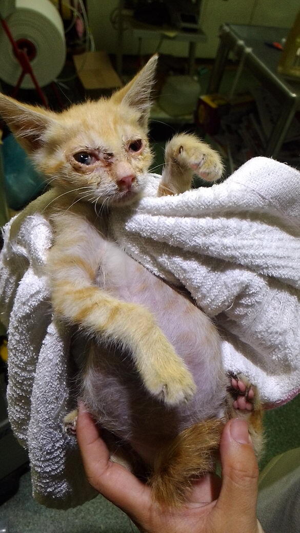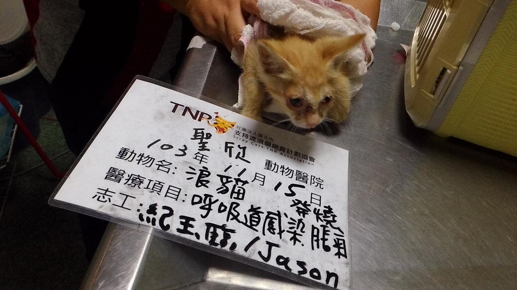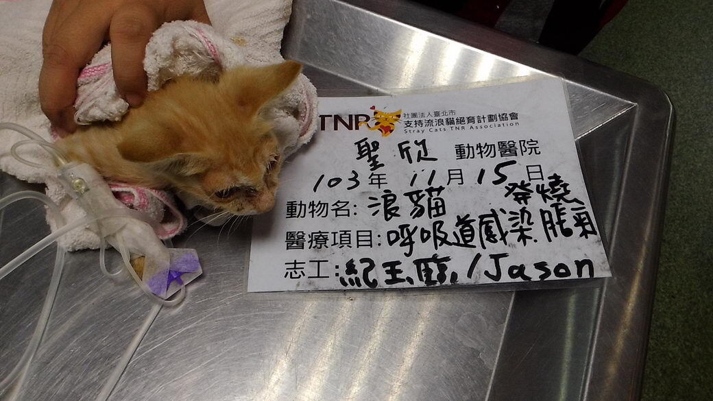 主題: 嚴重腹脹小黃貓 申請者姓名: 紀玉臨 花色: 申請日期: 2014-11-23 18:00:03 申請者部落格: 申請者臉書網址: 所在縣市/合作醫院: 台中市/聖欣動物醫院 治療費用: 2700元 需求人數: 4人 已結案 (2015-02-24 12:03:53) 報名人員: Cloud(已付款)、Luis x3(已付款)、 候補人員: 動物病情說明: 此隻小黃貓為被母貓遺棄的小貓。11/15發現小貓腹部嚴重腫脹、眼鼻分泌物很多、活動力明顯減弱、並且沒有食慾。送醫後檢查後,另外發現有發燒、脫水與呼吸道感染現象。 動物近況說明: 打點滴住院三天後,腹脹情形已改善,眼鼻分泌物亦減少。11/17出院,目前遵照醫生建議居家照顧中,等待貓咪完全康復。